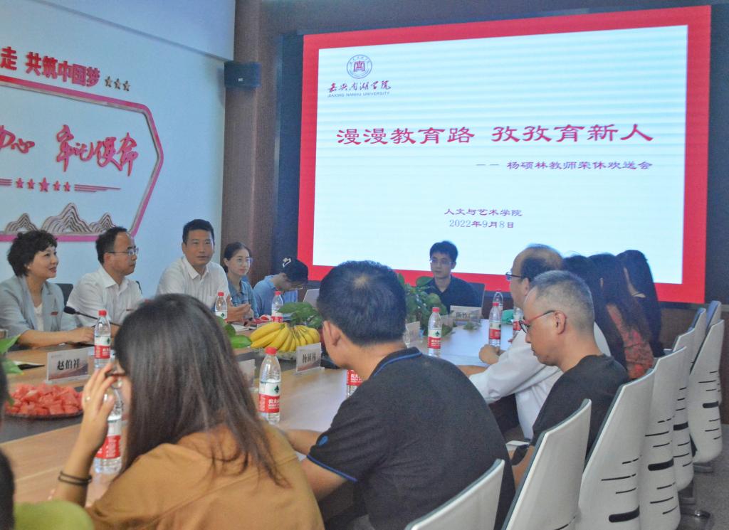岁月沉淀桃李芳香,勤恳奉献薪火相传。为增强教师间的凝聚力,传承和弘扬孜孜不倦、无私奉献的精神品质,9月8日下午,在线买世界杯平台召开杨硕林老师荣休欢送会,为光荣退休的杨老师送上真挚的祝福以及崇高的敬意。校党委委员、副校长朱蓉、人事处处长彭文利、在线买世界杯平台副院长赵伯祥、院党委副书记杨燕群、学院党政工团相关教师代表及秘书学专业教研室全体教师出席了欢送会。