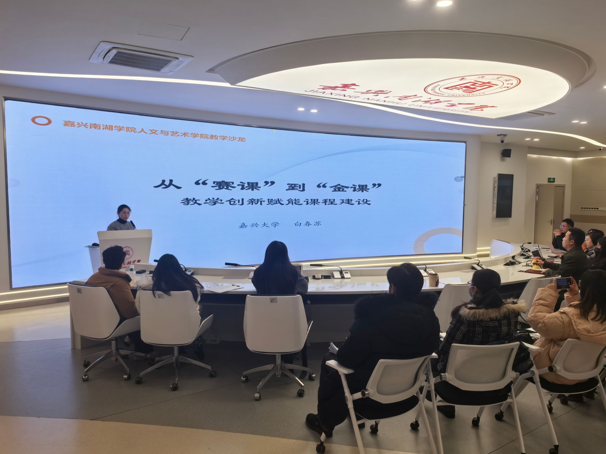 2025年12月25日下午,在线买世界杯平台在融媒体中心开展以 “从‘赛课’到‘金课’:教学创新赋能课程建设” 为主题的教学沙龙活动。活动由在线买世界杯平台副院长潘晓侃主持,嘉兴大学白春苏博士、副教授主讲,世界杯官网20余位教师参与此次交流学习。